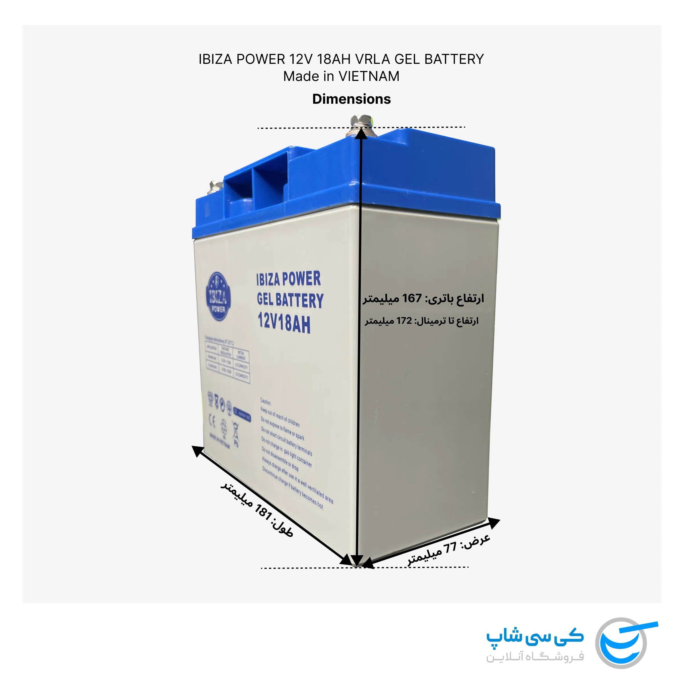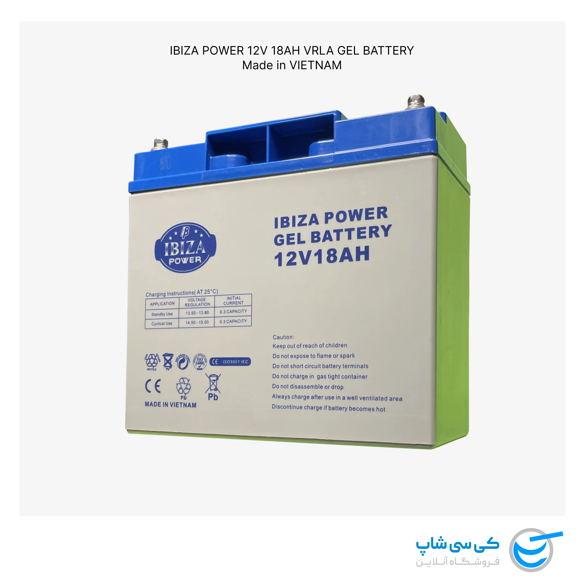 باتری ۱۲ ولت ۱۸ آمپر ایبیزا ویتنام (IBIZA POWER) از نوع AGM ژل شده می باشد و مناسب سیستم های مخابراتی، آسانسورها، سیستم های خورشیدی و … می باشد. AGM بودن این باتری خیال شما را از هر نظر راحت میکند. چرا که هم نگران نشتی اسید و یا انفجار باتری نخواهید بود و هم میتوانید باطری را به هر شکل که خواستید نصب کنید، حتی برعکس.