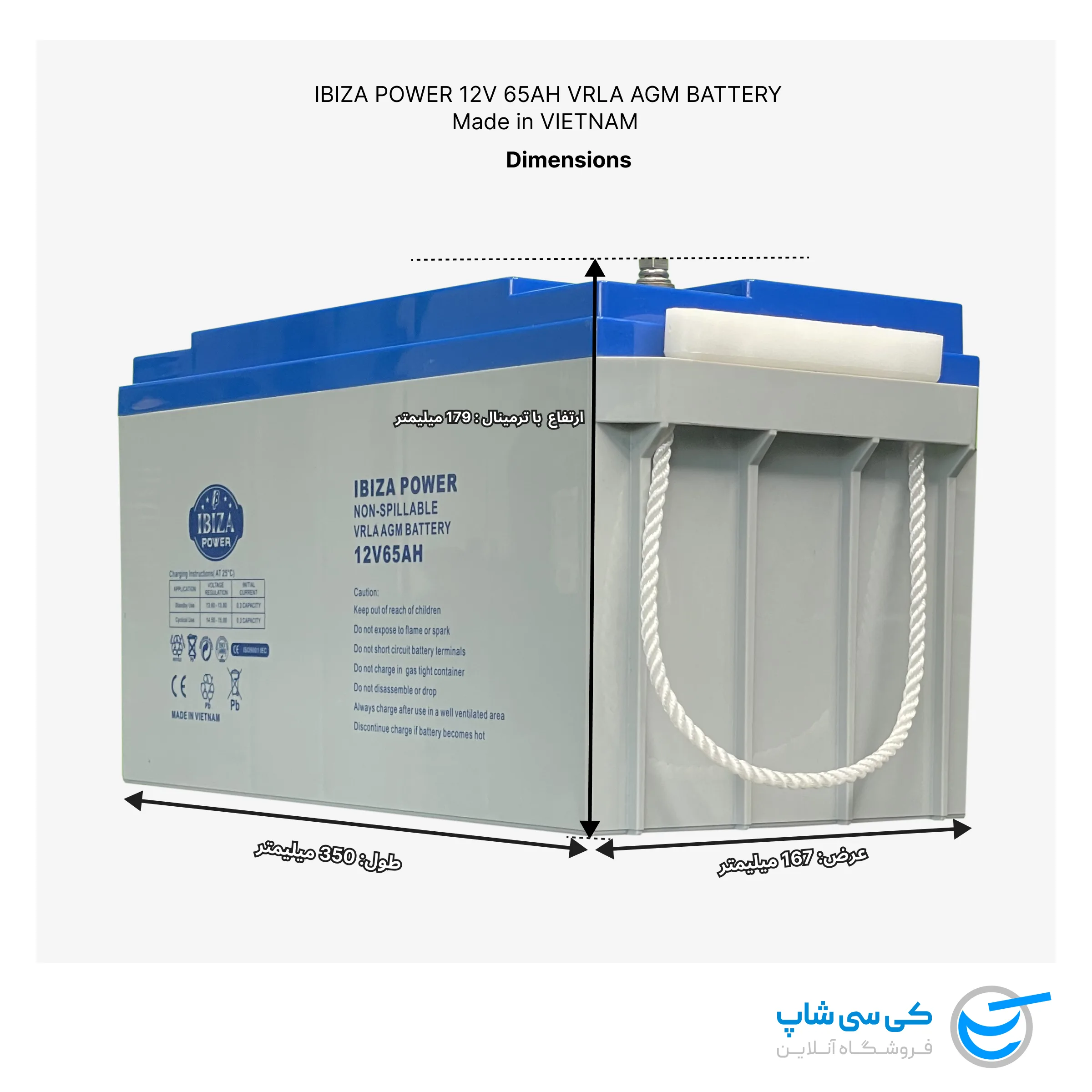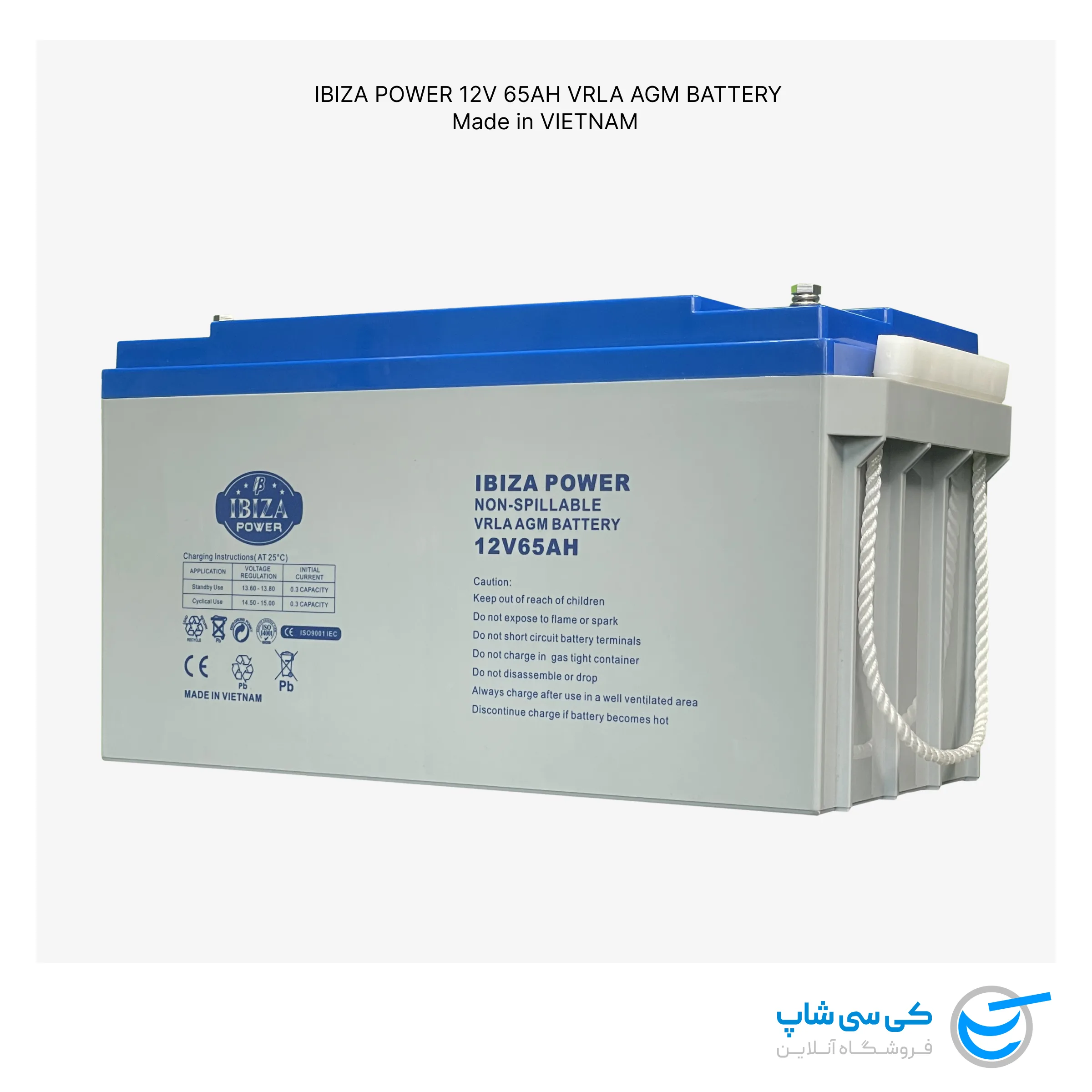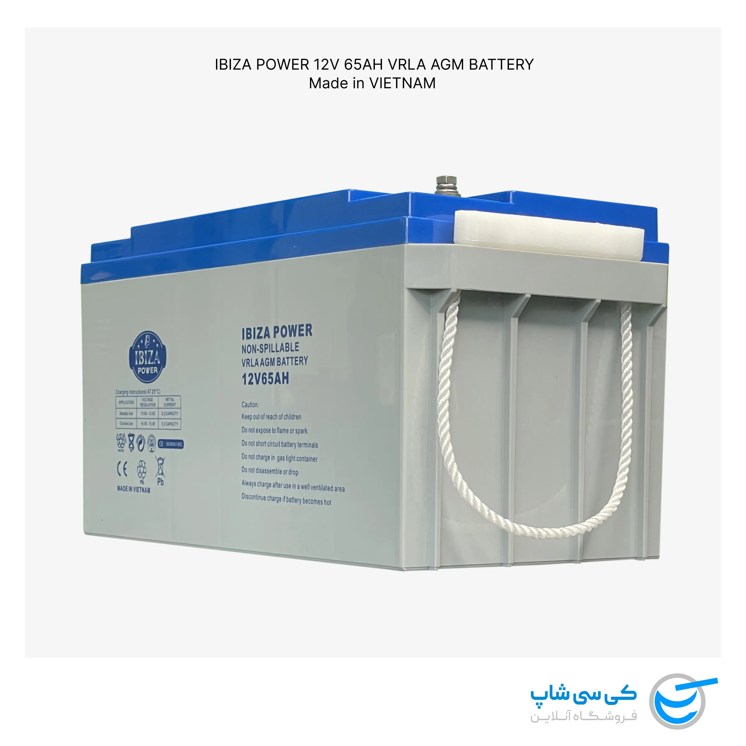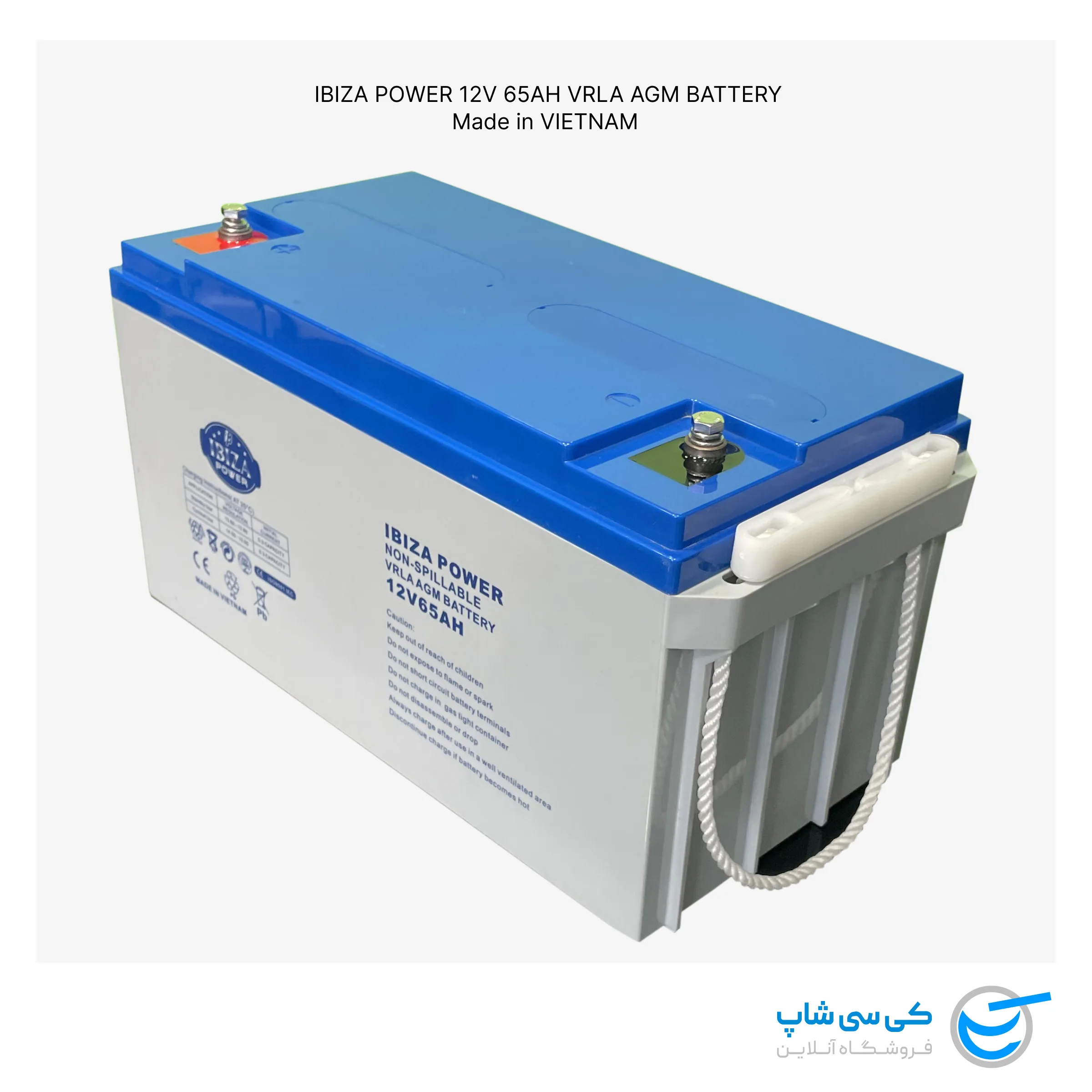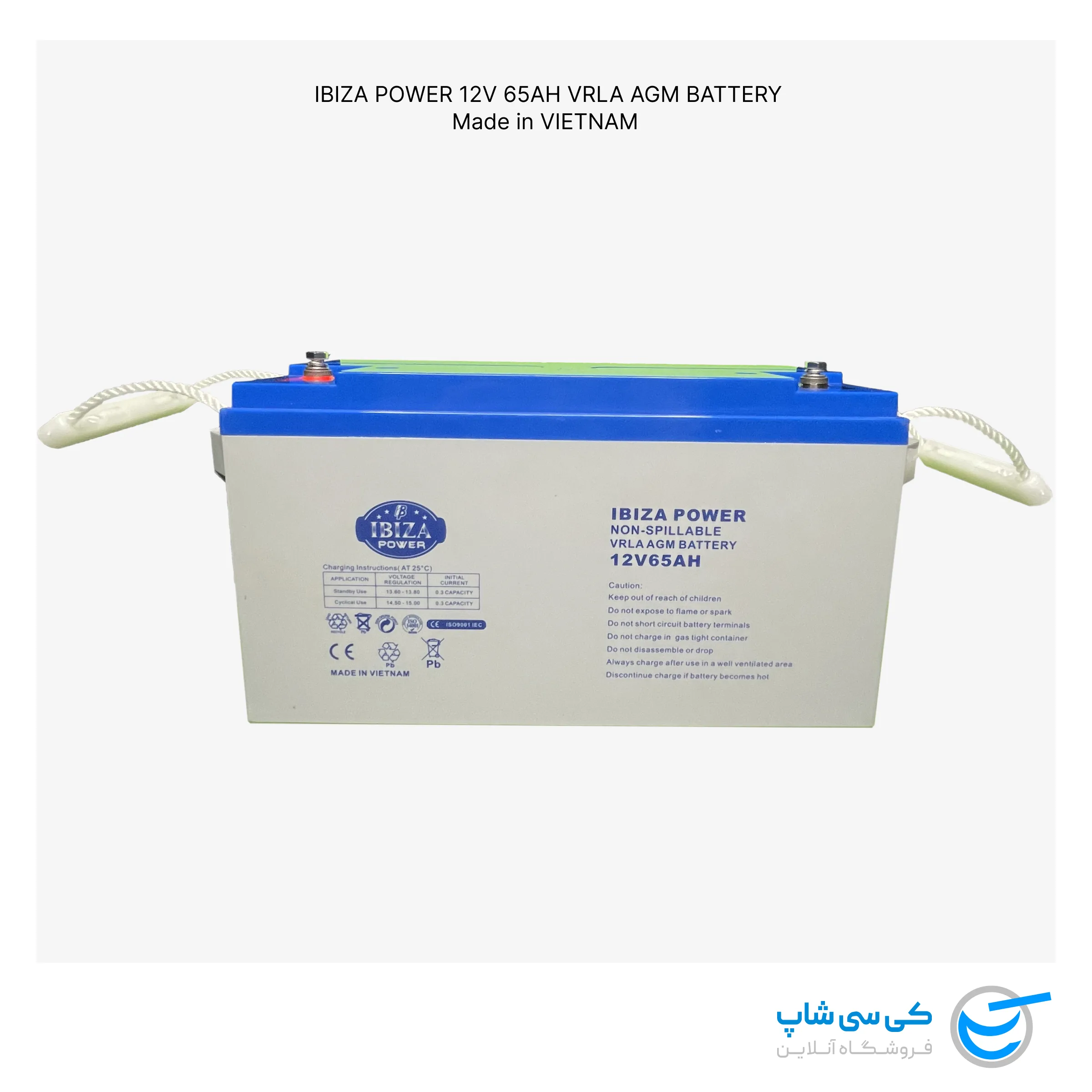 باتری ۱۲ ولت ۶۵ آمپر ایبیزا ویتنام (IBIZA POWER) از نوع AGM می باشد و مناسب سیستم های مخابراتی، آسانسورها، سیستم های خورشیدی و … می باشد. AGM بودن این باتری خیال شما را از هر نظر راحت میکند. چرا که هم نگران نشتی اسید و یا انفجار باتری نخواهید بود و هم میتوانید باطری را به هر شکل که خواستید نصب کنید، حتی برعکس.