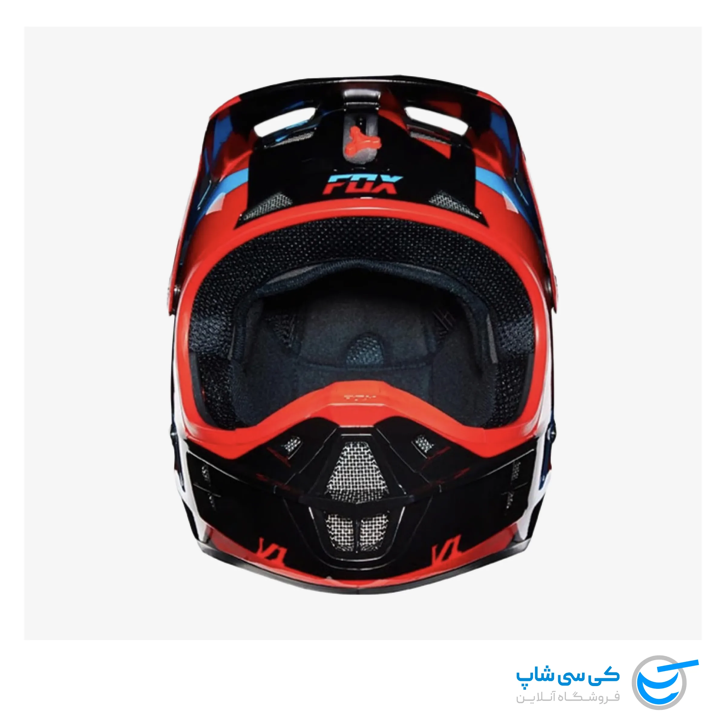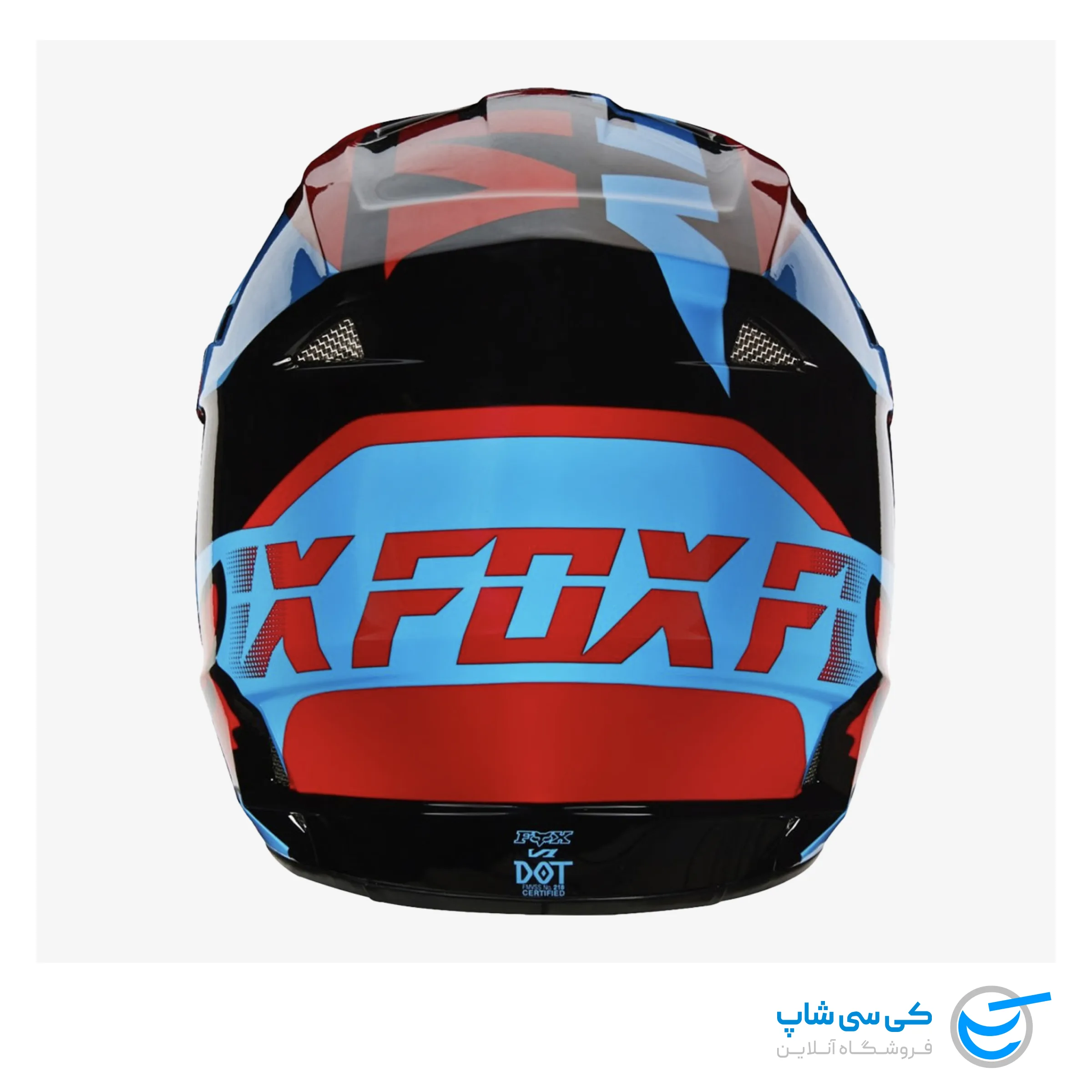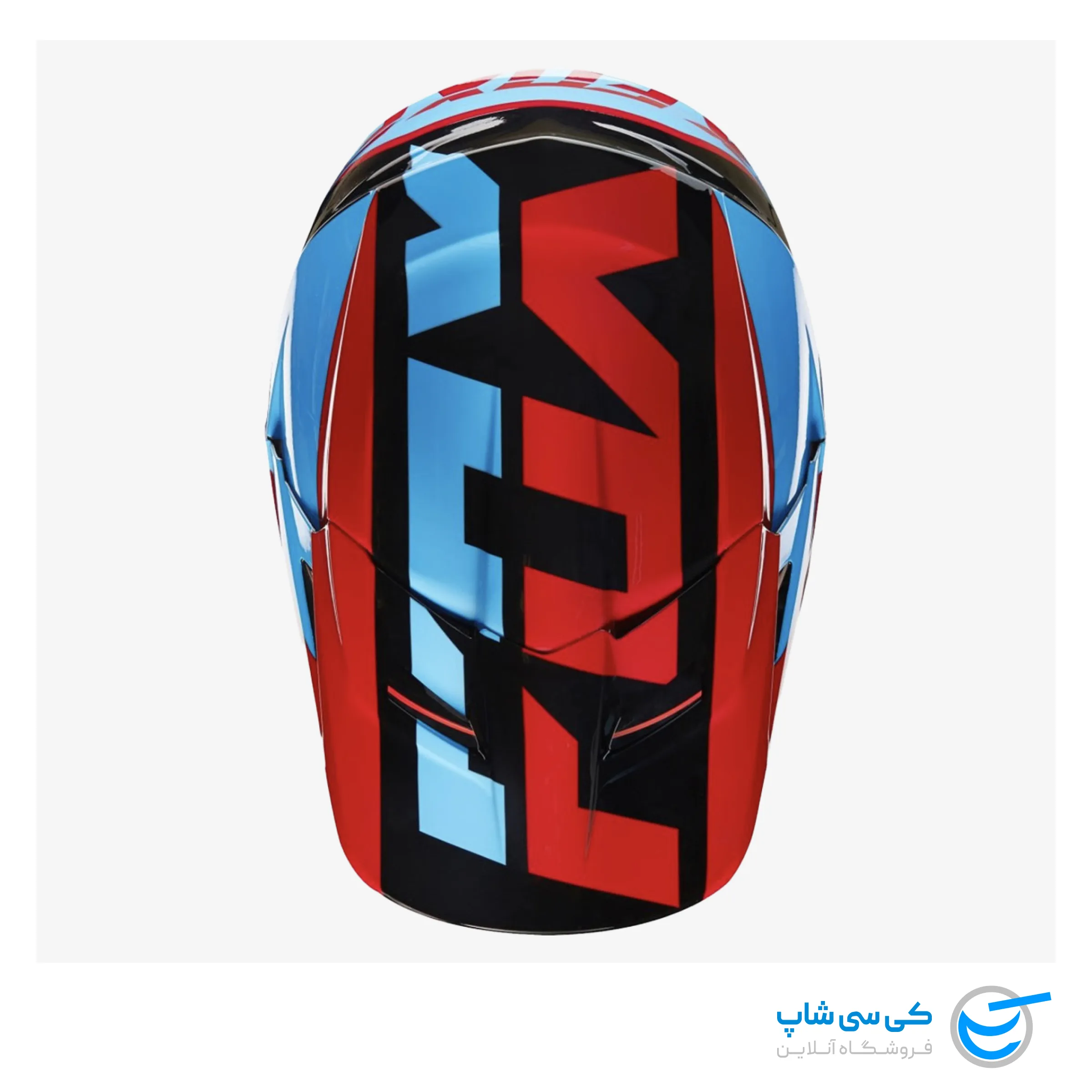 کلاه موتور کراس فاکس مدل V1 طرح Mako – رنگ قرمز، آبی آسمانی و مشکی براق