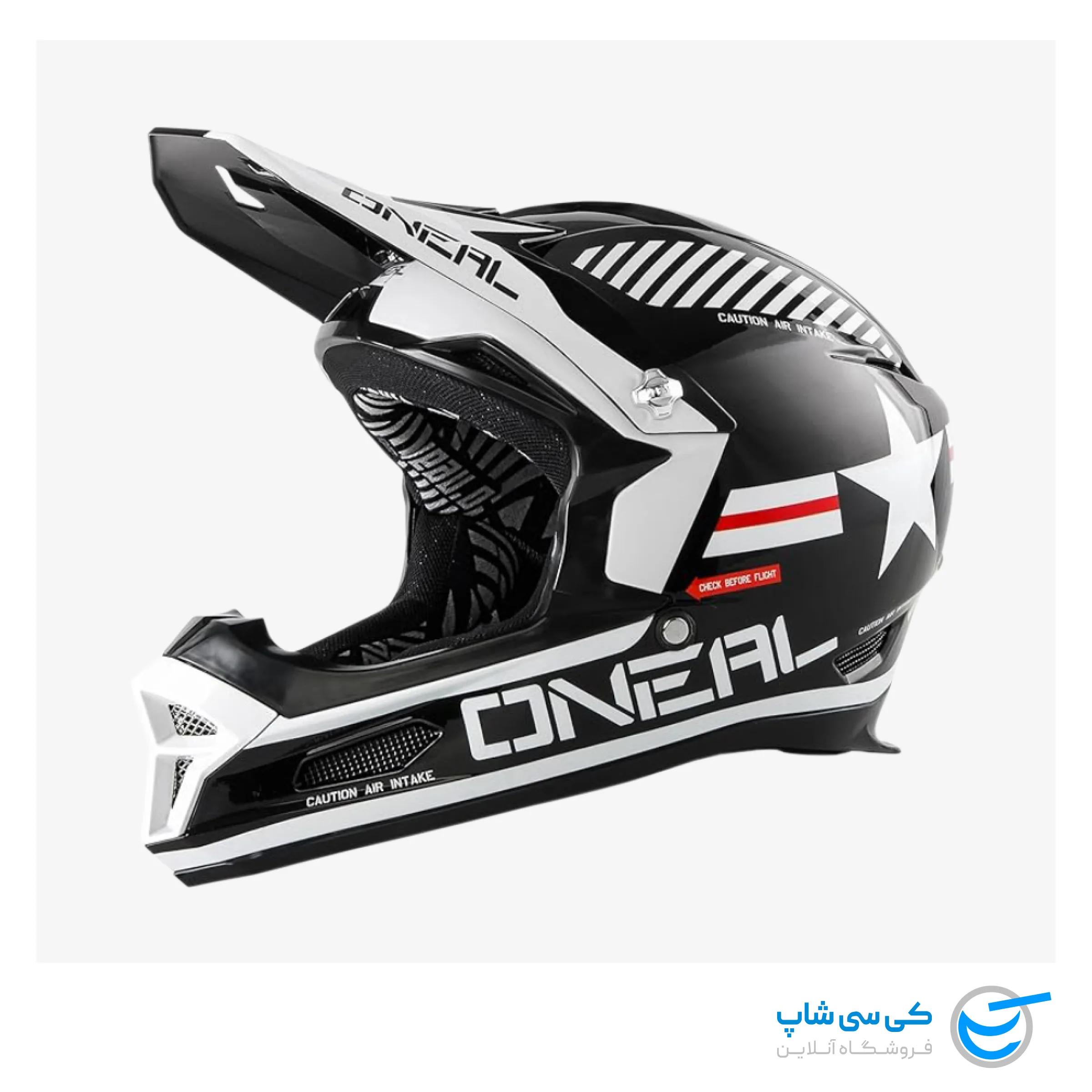 کلاه موتور کراس اونیل سری ۳ مدل فیوری Fury طرح Afterburner رنگ مشکی سفید